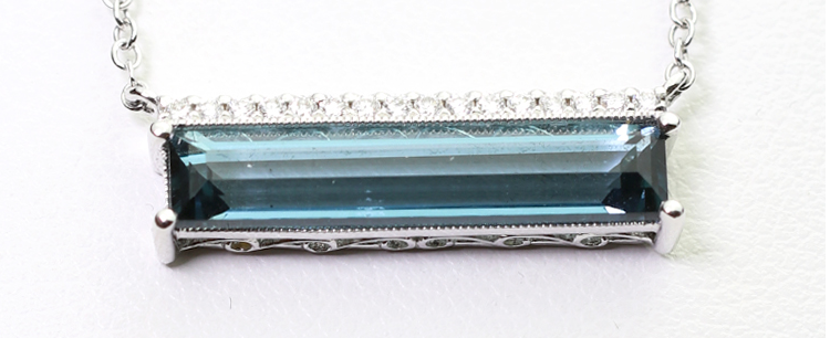 Color: Topaz gets its color from trace elements (iron, chromium, titanium, manganese) and has a color range from blue, green, brown, orange, yellow, red, pink, purple, violet, grey, and white (colorless). The special trade names for topaz are: Imperial Topaz (orange body with pinkish undertones) and Sherry Topaz (yellowish-brown or brownish-yellow to orange). Today, the most sought-after color is Imperial topaz. Blue Topaz gets its color from iron and has a color range from pale blue to sky blue to London blue to indigo. Today, the most sought-after color of blue topaz today is the Swiss and London blue topaz. Swiss Blue has a bright, vivid, electric blue color with a light tone and light to moderate saturation and can sometimes look like aquamarine color-wise. London Blue is a dark blue topaz with a moderate to dark tone and saturation.