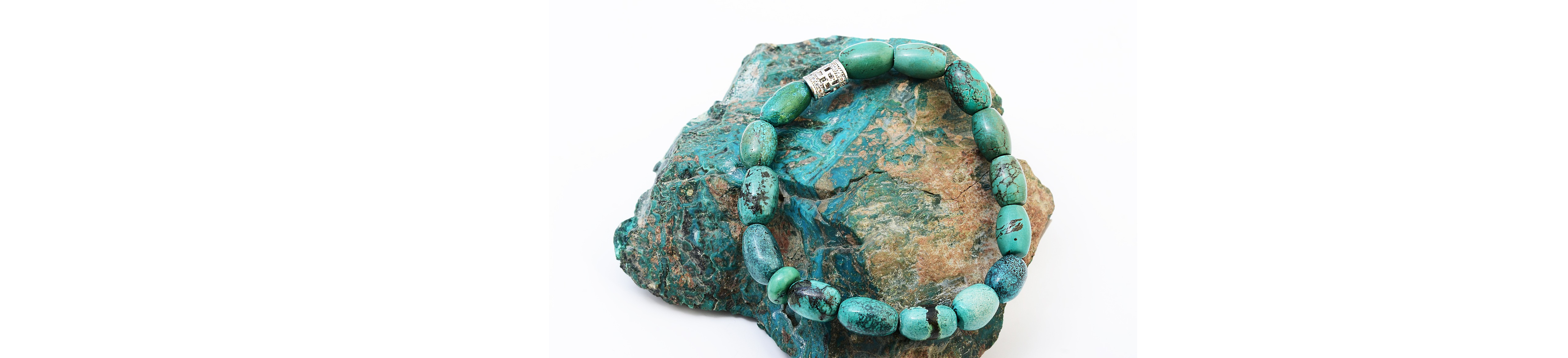 Care: Avoid high heat, oils, grease, perfume, chemicals, and extreme temperate changes. Avoid steam and ultrasonic cleaners. Use warm soapy water on a very soft cloth to clean and immediately dry with a soft cloth. Handle with care as it scratches easily and can be fragile; store it in a cool, stable, dry place apart from other jewelry when possible. Color: Turquoise gets its color from copper, aluminum, zinc, and iron and has a color range in shades of blue to green. The presence of iron gives it a greenish hue whereas zinc causes more of a yellowish hue. Its color can change over time due to body oils and other moisture absorbed into the stone. Today, the most sought-after color of Turquoise is Robin's Egg Blue, Sky Blue, or Persian Blue.